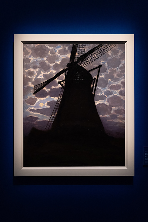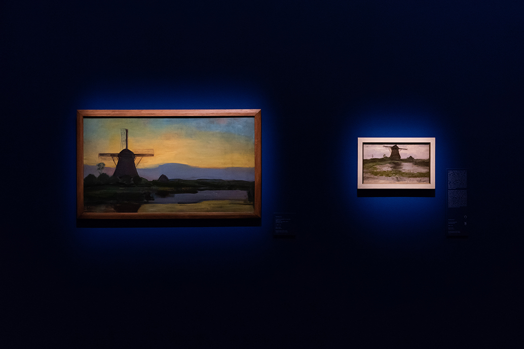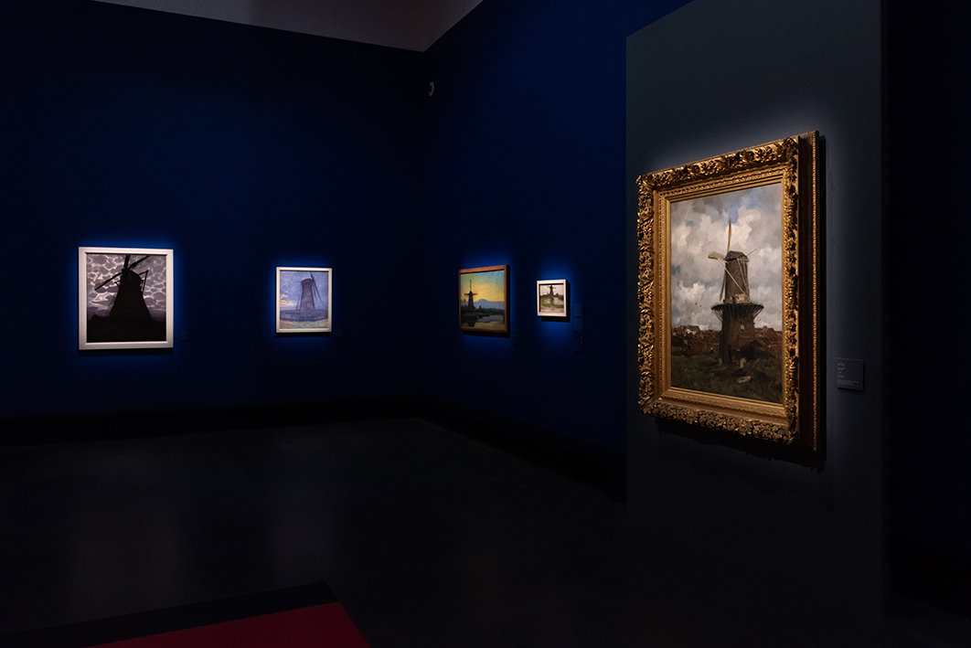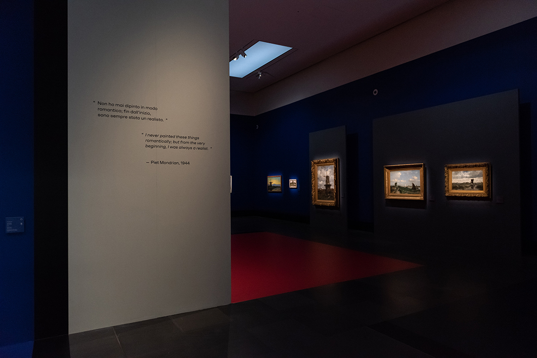 L’artista parte dalla tradizione per arrivare all’innovazione. Le sue radici sono nella terra d’origine: il piatto paesaggio olandese, dominato da elementi verticali, come gli alberi e i mulini a vento, è essenziale per il viaggio verso l’astrazione. Dal 1900 in poi il paesaggio diventa il punto di partenza per ridurre il mondo intorno a lui all’ essenza assoluta: un ritmo di piani, colori e linee. Il leitmotiv resta sempre quello della sua terra, lontano dai voli del russo Kandinkskij.
