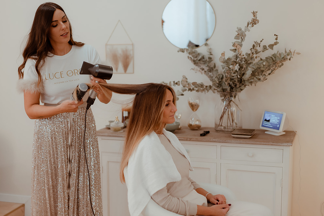 La creazione di Luce Oro nasce quindi dall’esigenza di offrire un’esperienza unica e personalizzata in un’atmosfera tranquilla e intima dove le clienti possono rilassarsi, godersi il servizio stilistico e riproporlo tutte le volte che vogliono direttamente a casa propria.