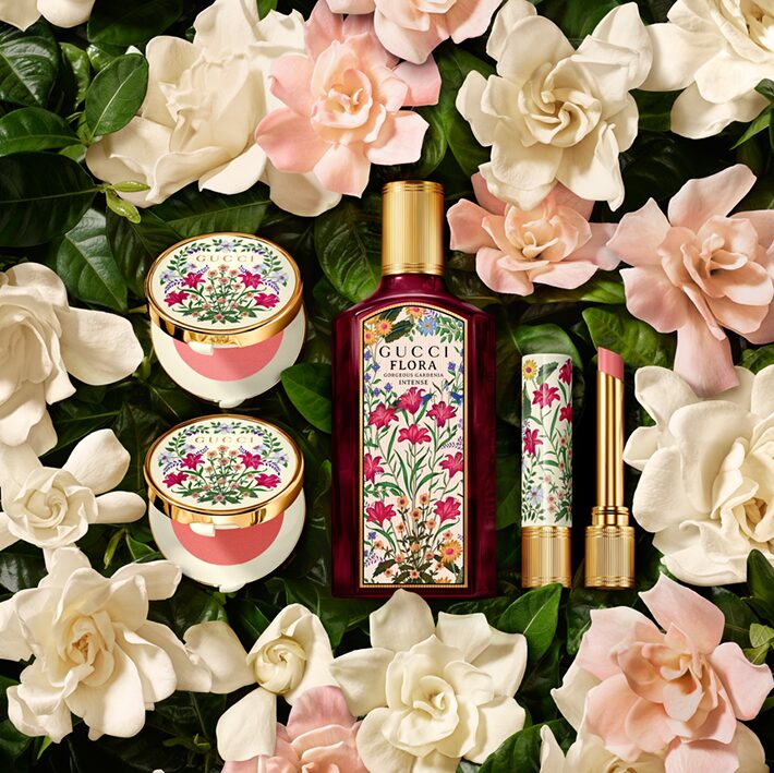 Gucci Beauty celebra la fragranza iconica Gucci Flora Gorgeous Gardenia Intense con una linea esclusiva di rossetti e blush, tra fiori, colori e pura gioia