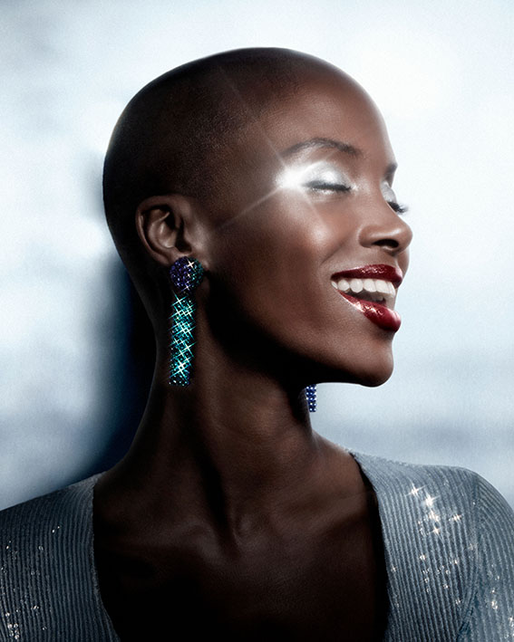 Gli occhi catturano l’attenzione con l’Eye Tint 1S, un argento puro e vibrante applicato a tutta palpebra. La profondità è assicurata dalla matita Smooth Silk Eye Pencil 4 sfumata e dall’immancabile Vertigo Lift Mascara.