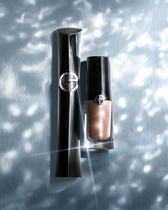 Lo sguardo si accende grazie a una stratificazione di tre Eye Tint (1S Silver, 32S e 67S Sparkle), ombretti liquidi noti per la loro tenuta estrema e il finish impalpabile. La rima ciliare è intensificata dalla matita Smooth Silk Eye Pencil 4, mentre il volume delle ciglia è massimizzato dal Vertigo Lift Mascara. Sulle labbra, il Lip Power 400 – il rosso Armani per eccellenza – garantisce comfort e colore saturo a lunga durata.