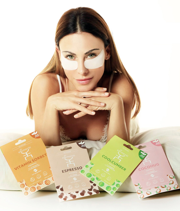 I patch occhi “Gli Elementi” rispondono a diverse esigenze. Vitamin Sorbet, con Vitamina C, agisce su stanchezza e segni anti-age. Completano la linea Espresso (caffè), Coolcumber (cetriolo) e Cocohug (cocco)