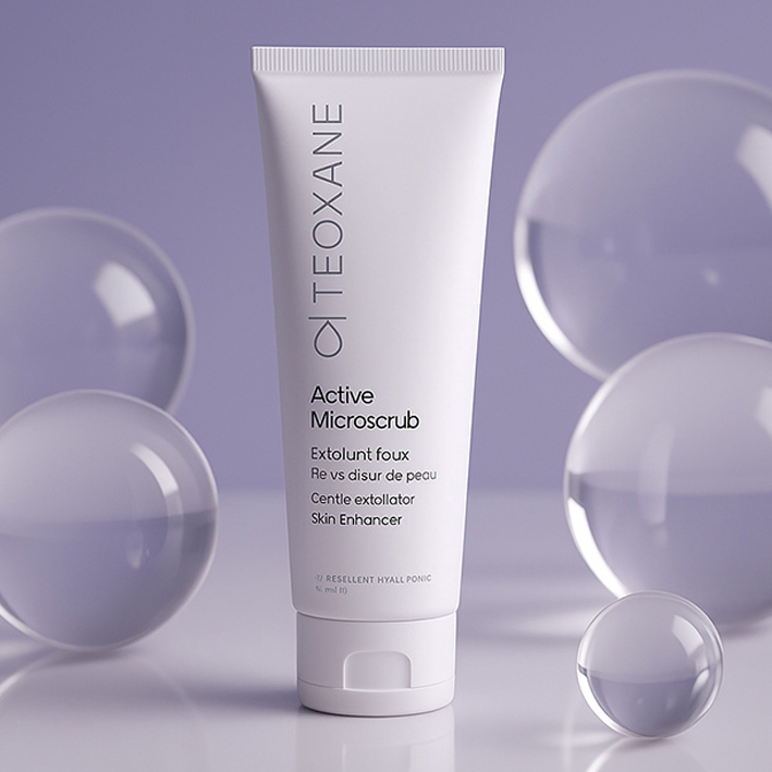 Il rinnovamento cellulare è la base di ogni pelle luminosa. Teoxane ha ingegnerizzato Active Microscrub per agire su due fronti simultanei. Da un lato, i microgranuli di vetro vulcanico agiscono meccanicamente; dall’altro, la Papaina (un enzima proteolitico) lavora biologicamente sciogliendo i legami tra le cellule morte. La texture, che si trasforma da gel a latte, guida l’applicazione per un effetto peeling immediato che rivela una nuova luminosità senza aggredire il film idrolipidico.