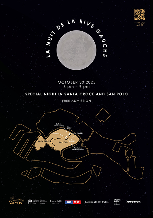 Giovedì 30 ottobre 2025, sette luoghi d’arte nei sestieri di San Polo e Santa Croce a Venezia parteciperanno a “La Nuit de la Rive Gauche”. L’evento, promosso da Fondation Valmont, prevede un’apertura serale straordinaria (18:00-21:00) per un percorso notturno tra mostre e design