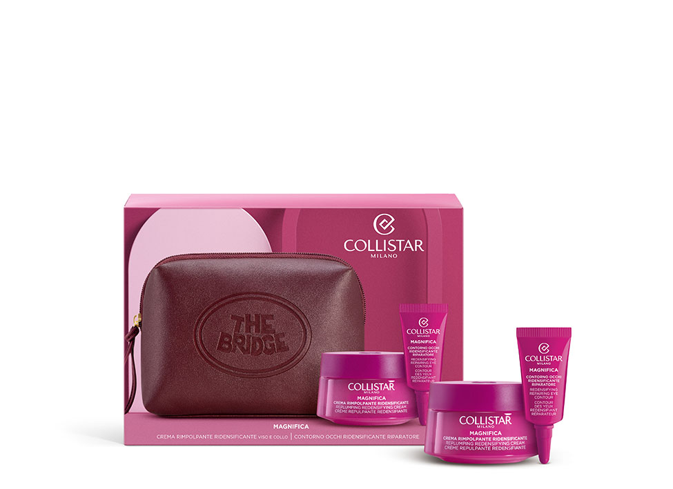 - Cofanetto Magnifica con Crema Rimpolpante Ridensificante da 50 ml, Contorno Occhi Ridensificante Riparatore da 5 ml e il sample di Gocce Magiche;