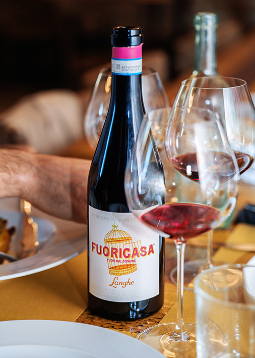 Un rosso che si sposa alla perfezione con il lato più leisure della vita. «Ci sono vini che trovano il loro equilibrio restando dentro una definizione, noi abbiamo preferito fare un passo di lato», conclude Alberto. «Fuoricasa è un rosso pensato per la convivialità moderna, per i momenti in cui si cerca l’eleganza senza la rigidità». Si presta magnificamente a essere servito leggermente fresco, intorno ai 10–12 °C, diventando il compagno ideale anche per le sere d’estate: il calice perfetto per chi cerca un’eleganza disinvolta, che non sovrasta mai il piatto, ma lo corteggia con un garbo dinamico e irresistibile.