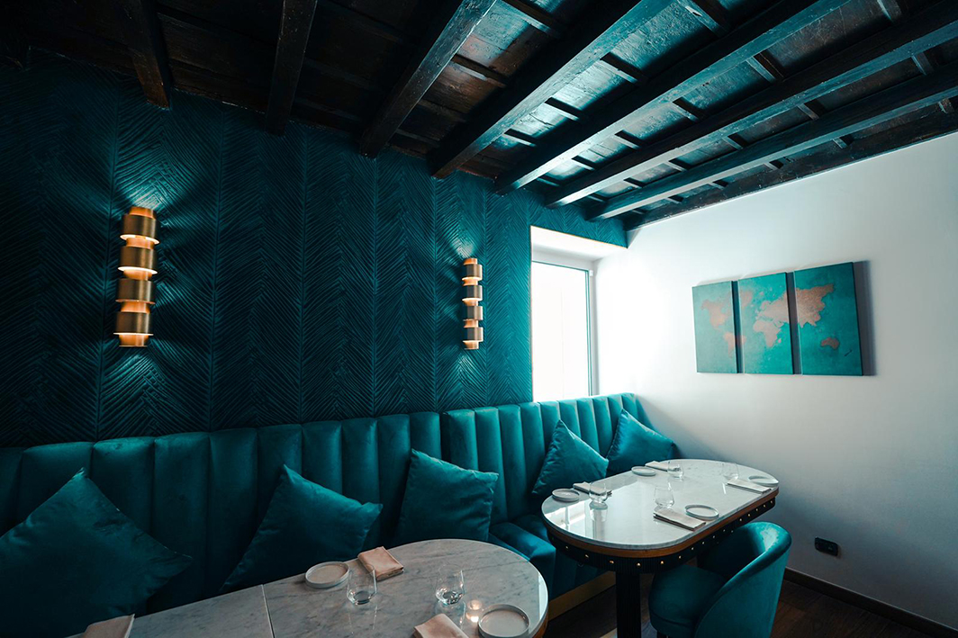 Fino a 80 persone possono essere accolte nel locale che si compone di due piani più il grazioso dehor. Al piano terra l’ambiente è familiare e informale perché è dove viene offerto servizio breakfast, brunch, lunch e aperitivo, mentre salendo al piano superiore si entra in un’atmosfera più sofisticata da fine dining restaurant, perché è l’area preposta al servizio dinner.