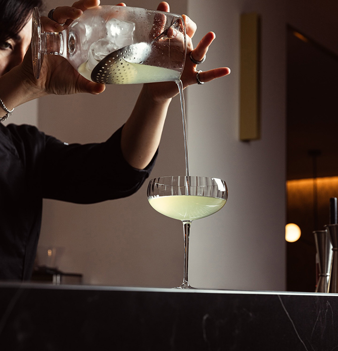 La carta vini spazia dalle eccellenze locali alle sfumature più mediterranee, ma vi consiglio anche di lasciarvi trasportare dalla passione e bravura di Damara Lanzone, che cura la mixology del cocktail bar e saprà trovare il miglior abbinamento, spaziando dai classici, alle rivisitazioni, fino ai drink alcool free.