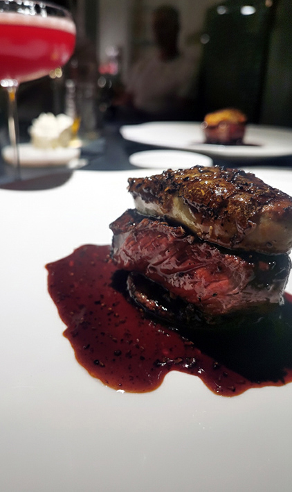 Proseguendo nella giostra dei sapori non manca la golosità, espressa nelle morchelle ripiene con mousse di agnello, calamaretti spillo alla plancia, salsa albufera e tartufo e nel piatto fuori menù, che è possibile aggiungere a richiesta, e che a fine degustazione è decisamente il do di petto o, in tema gioco, uno scacco matto. Filetto di Rubia Gallega alla Rossini, foie gras Collverd, tartufo nero e salsa al Pedro Ximénez. Esecuzione semplicemente perfetta, materia prima eccellente e un gusto da perderci i sensi dal piacere. Il coltello passa dal foie gras alla carne come fossero gli stessi ingredienti, tale la scioglievolezza, e poi in bocca ti viene da chiudere gli occhi per goderne fino in fondo senza distrazioni.