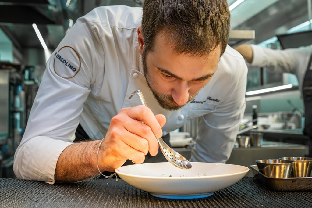 Lorenzo è uno chef che va controcorrente, non per niente ruffiano e omologato alle tendenze gourmet. Va dritto per la sua strada tenendo a rimarcare il forte legame con la sua scuola di formazione.