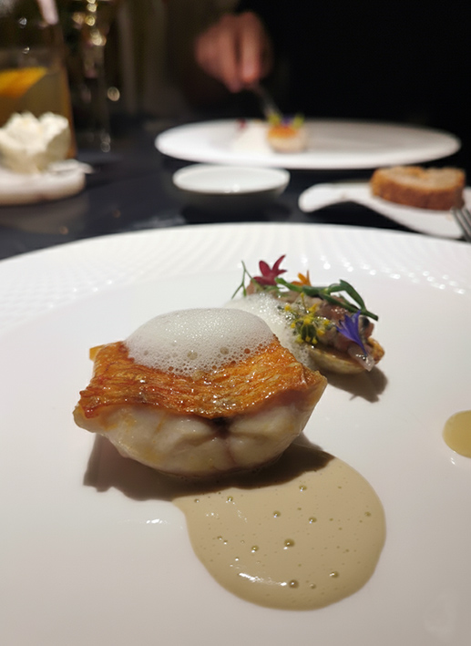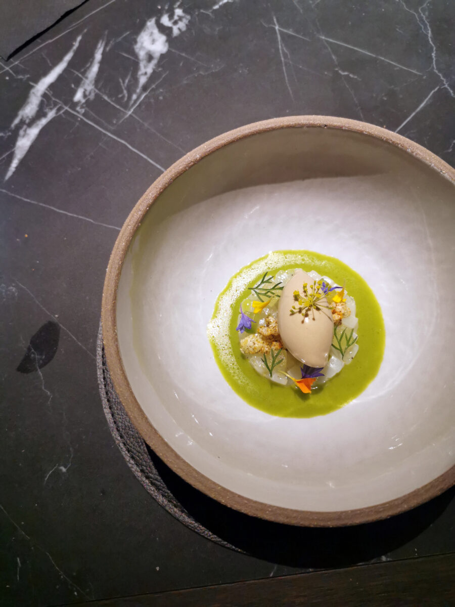 Nel bagaglio che ha fatto suo c’è una scelta ben chiara sul pescato, che per lui è solo quello dell’Atlantico: un mare freddo, con tante correnti e che dà al pesce più muscolosità e corpo. Ed è talmente rispettoso di questa materia prima che la lavora il meno possibile. “Non gli facciamo nulla, né seccare, né dry age. È fresco, lo sfilettiamo, abbattiamo e cuociamo pochissimo”.