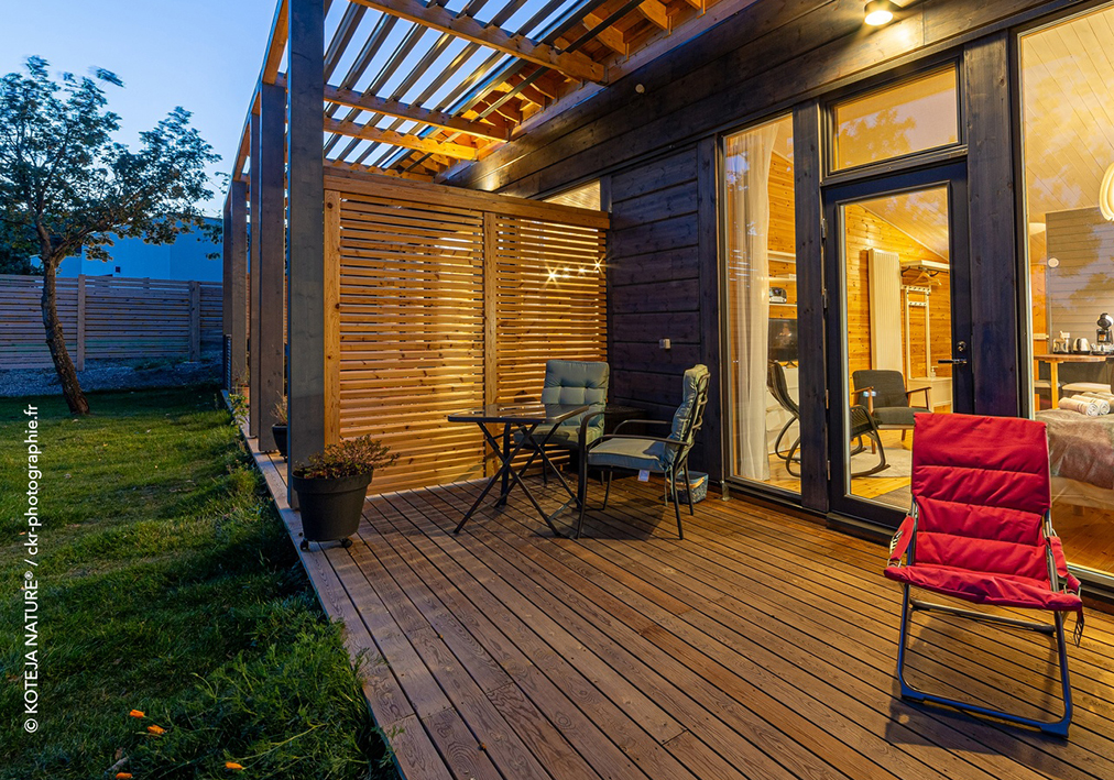 Nel dipartimento dell’Ardèche, si può trascorrere una vacanza fatta di luce, legno e serenità. A Saint-Romain-de-Lerps, a 25 minuti da Valence, Koteja Nature è una nuova interpretazione dell’idea del ritorno alla natura: un edificio eco-compatibile con immense finestre che si affacciano sulle querce della proprietà di 1.300 m² che si affaccia sulla valle del Rodano e sul castello di Crussol.