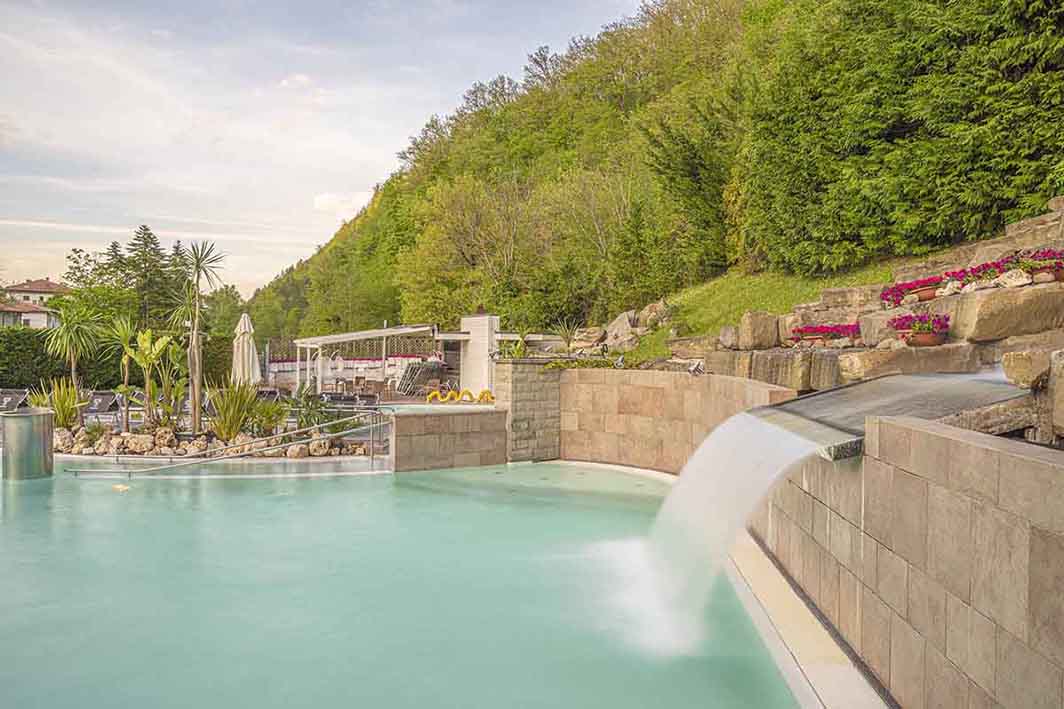 L’effetto benefico sulla salute umana deriva dalle ricche sostanze naturali di cui l’acqua termale si arricchisce nel corso di un lungo processo. Tutto ha inizio con l’acqua di origine piovana della zona intorno al Monte Comero, che penetra in profondità nel sottosuolo.