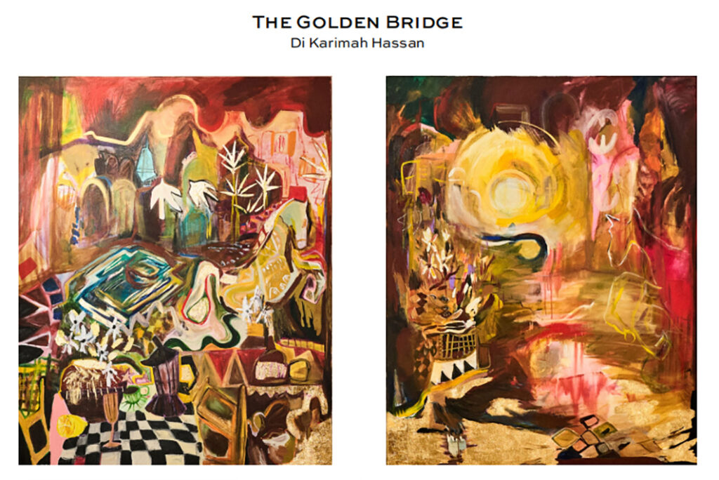 Con le sue ricche radici gallesi, yemenite e bengalesi, Karimah Hassan esplora temi come la memoria, la tradizione e l’identità attraverso dipinti e installazioni di grande formato. Il suo approccio, definito “dipingere ad alta voce”, l’ha portata a tradurre la fragranza in un’opera e una poesia intitolate “The Golden Bridge”.