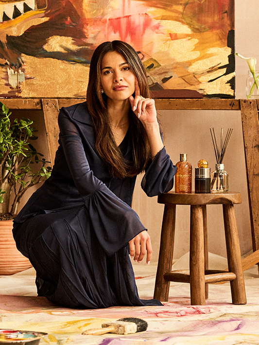 Per esprimere il potere sensoriale di questa composizione, Molton Brown ha inaugurato la serie “Artists of Note”, invitando creativi a interpretare le sue fragranze. La scelta per Mesmerising Oudh Accord & Gold è caduta sull’artista multidisciplinare londinese Karimah Hassan.