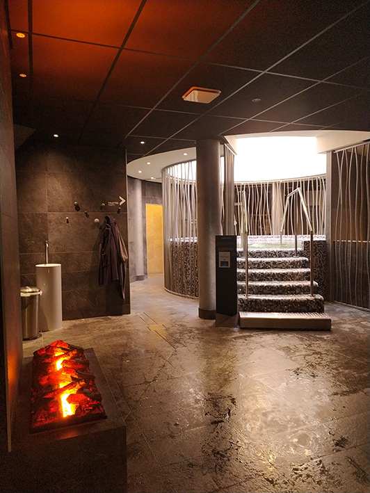 L’intera struttura viene riscaldata per mezzo di un sistema geotermico, una scelta fatta per contribuire al rispetto dell’ambiente e alla riduzione delle emissioni di CO2. Questo sistema di riscaldamento ecologico utilizza l’energia termica dell’acqua termale.