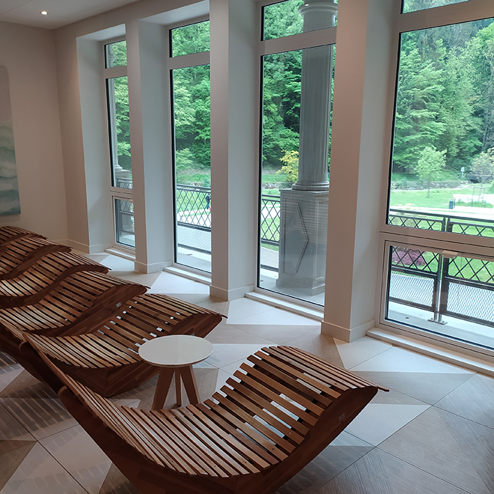 La ristrutturazione della stazione termale ha portato a ridistribuire gli spazi e a crearne di nuovi, come la Redwood Sequoia, una splendida Spa di 1500 mq che offre un innovativo percorso sensoriale.