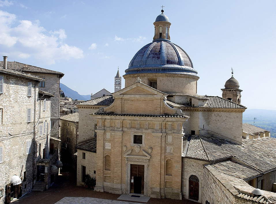 All’interno della cattedrale, che ha subito parecchi rimaneggiamenti nel corso del tempo, c’è ancora il fonte battesimale originale davanti al quale i due piccoli assisani, che sarebbero diventati grandi per il mondo intero, furono aspersi con l’acqua benedetta. Fuori, la facciata della chiesa rappresenta tutt’oggi uno degli esempi più belli di romanico umbro, con il suo rosone ricamato e le tante statue che la arricchiscono, pregne di simbologia.