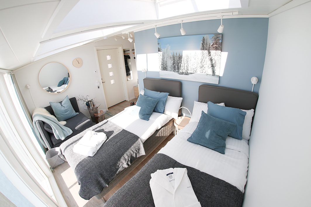 Sarà la signora Maarit Lindvall a ricevere gli ospiti nei cinque moderni cottage racchiusi in un guscio a forma di igloo. Gli alloggi sono tutti decorati con arredi scandinavi e dotati di grandi finestre attraverso cui sentirsi immersi nel bellissimo paesaggio ovattato di neve.