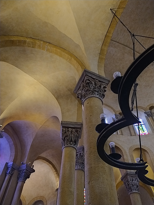 Anche diverse chiese romaniche della Val d’Allier recano la stessa calda tonalità bionda, perché costruite utilizzando l’Arkose: un esempio illustre è la chiesa abbaziale di Issoire.
