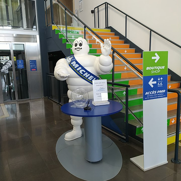Il famoso marchio di pneumatici ha attinto alle sue immense collezioni per riportare in maniera fedele tutte le tappe della sua lunga storia della mobilità, dalla nascita della ruota di legno al pneumatico: nel museo dell’Aventure Michelin sono presenti manifesti, documenti, pubblicità, veicoli, mappe, guide e film.
